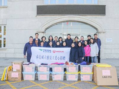 ? 為踐行威立雅集團(tuán)所倡導(dǎo)的可持續(xù)發(fā)展及社會服務(wù)的承諾,培養(yǎng)員工關(guān)注弱勢群體,關(guān)愛他人,服務(wù)社會的意識,公司組織開展了“關(guān)愛孤獨(dú)癥兒童”愛心捐贈活動,公司26位員工自愿參與了捐贈活動,共計(jì)收集舊衣物、玩具共10箱,購置新桌椅10套,于2016年11年8日下午,捐贈員工代表將愛心物資送往天津?yàn)I海新區(qū)翔羽孤獨(dú)癥康復(fù)中心,同時,參觀了康復(fù)中心并慰問中心的老師和孩子們。